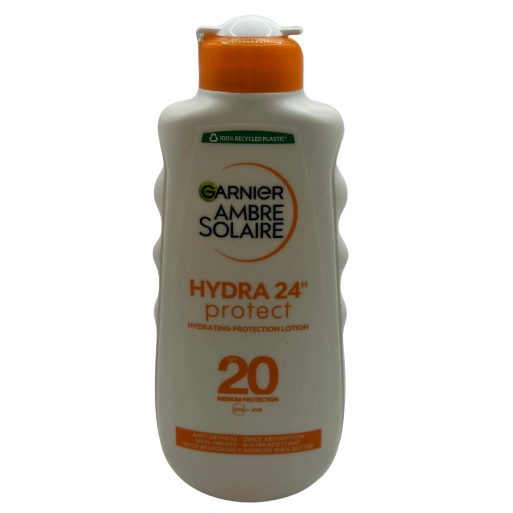 Garnier ambre solaire hidratáló naptej UV-sugárzás elleni naptej magas védelemmel SPF 20. Hidratáló összetétel, amely véd a nap szárító hatásától. Öko forrásból származó shea vajjal gazdagítva a bőr táplálásáért. Bőrgyógyászati ellenőrzés mellett tesztelt.